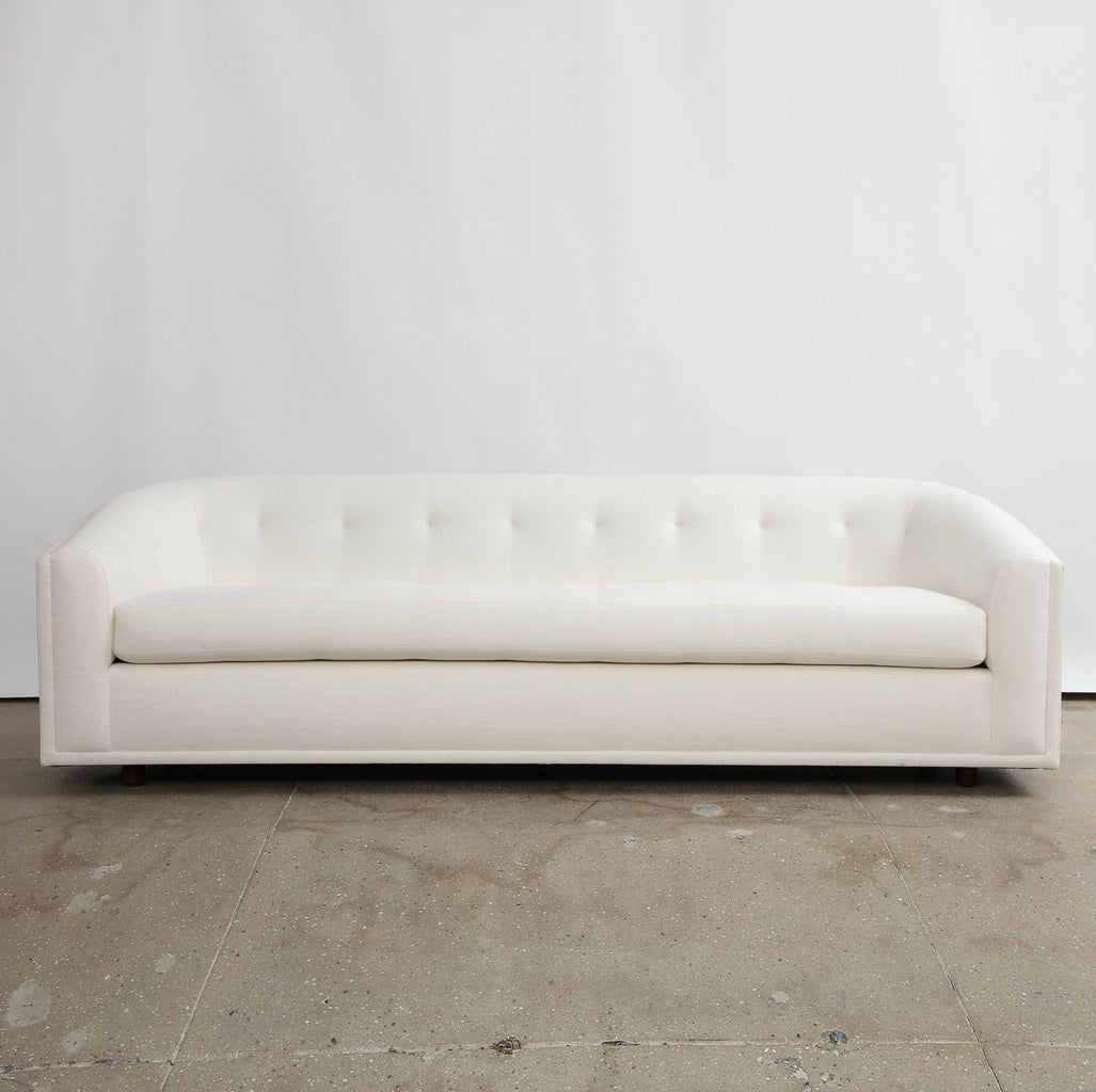 UPHOLSTERY: HAND-TIED COIL SPRINGS | DOUBLE STEEL REINFORCEMENT ENCASED IN LAYERS OF HORSEHAIR | LUX FOAM SEAT & BACK | SOUND PROOF TWINE + JUTE WEBBING