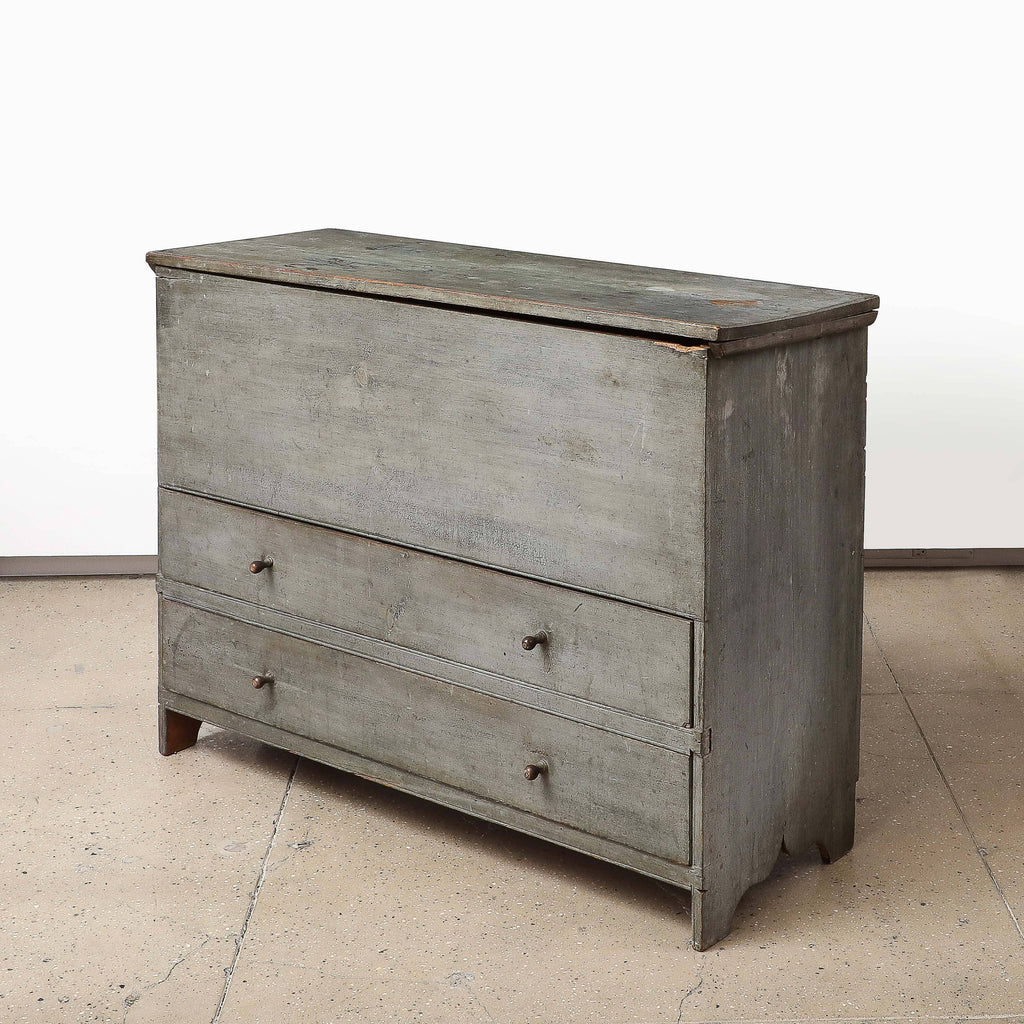 ORIGINAL BLUE/GREY PAINT | Lift toP, WITH TWO DRAWERS AT BASE