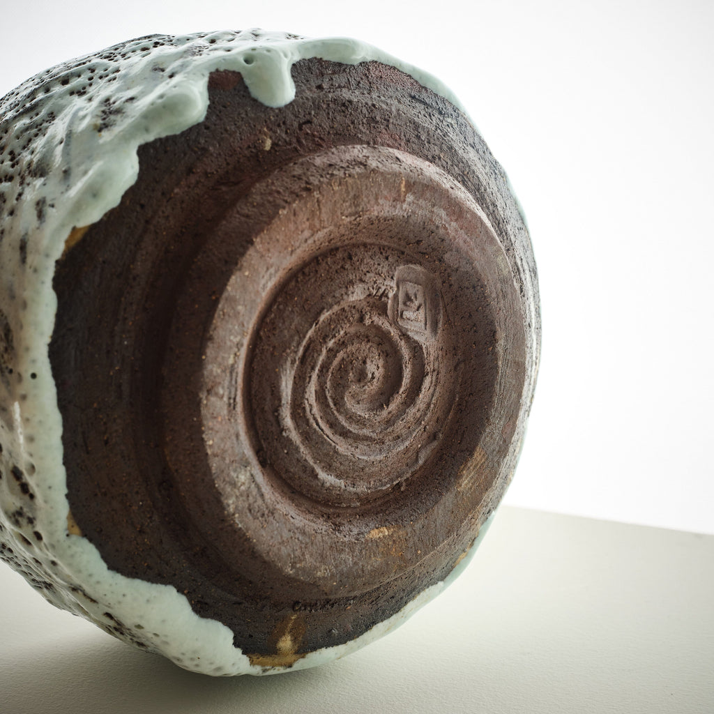 STONEWARE BOWL WITH GLOSSY PALE BLUE AND WHITE GLAZE | IMPRESSED WITH ARTIST’S INITIALS DENMARK, 1980S