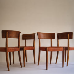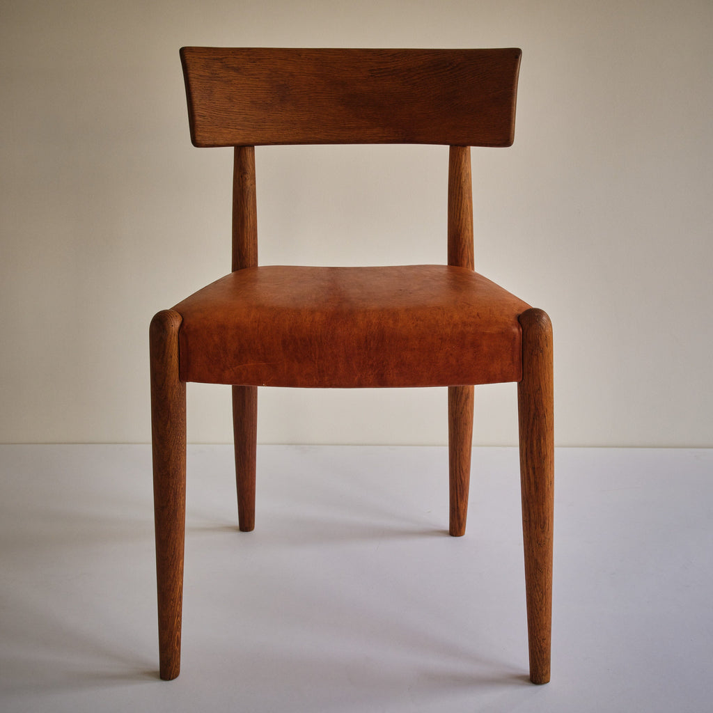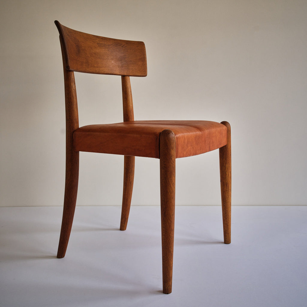 SOLD AS A SE T OF FOUR | SEAT UPHOLSTERED IN ORIGINAL COGNAC COLORED NIGER LEATHER | KAJ GOTTLOB FOR FRITZ HANSEN, DENMARK, 1939